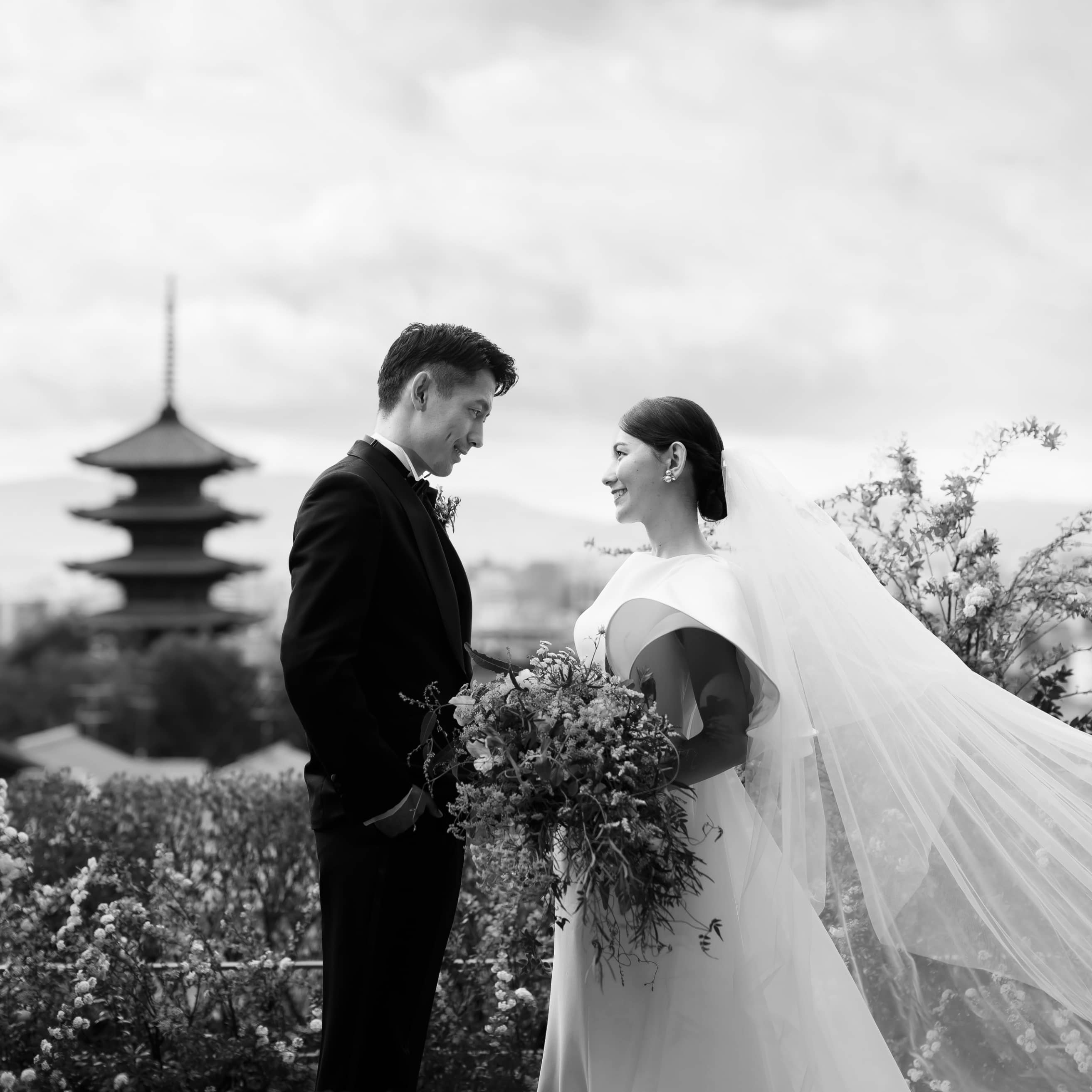 八坂の塔と歴史的な街並みを望む眺望と背景に伝統と革新をつなぐテラスで挙式を叶えて